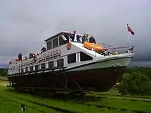 Elbląg Canal (pronounced [ˈɛlblɔŋk] ⓘ; Polish: Kanał Elbląski [ˈkanaw ɛlˈblɔ̃skʲi]; German: Oberländischer Kanal) is a canal in Poland, in Warmian-Masurian Voivodeship, 80.5 kilometres (50.0 mi) in length, which runs southward from Lake Drużno (connected by the river Elbląg to the Vistula Lagoon), to the river Drwęca and lake Jeziorak. It can accommodate small vessels up to 50 tonnes (49 long tons; 55 short tons) displacement. The difference in water levels approaches 100 metres (330 ft), and is overcome using locks and a system of inclined planes between lakes.