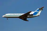A Yak 42 of Elbrus Avia arrives at London Stansted