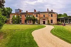 The Elcot Park estate was purchased by Anthony Bushby Bacon (1772 - 1827), the son of a wealthy Welsh industrialist,[2] from Charles Dundas, 1st Baron Amesbury, a prominent landowner from nearby Barton Court. He built the house in 1817. The gardens of Elcot Park were laid out in an English landscape style, with the area around the mansion laid to lawns with clumps of trees, woodland walks and distant views over the Kennet valley. There also was a walled kitchen garden with a range of glasshouses, including four greenhouses for vines and peaches, and also a pine pit heated with hot water.[3] Elcot Park was well known in the nineteenth century for Bacon's implementation of hot water heating in the glasshouses.[4]