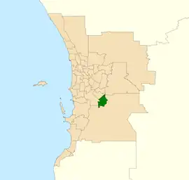 The 2007 redistribution, which took effect at the 2008 election, resulted in the seat losing eastern Kelmscott as well as Wungong and Forrestdale.[4]