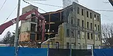 In the years afterward, the Ontario Ministry of the Environment became aware that the property was heavily contaminated with various metals, petroleum hydrocarbons, volatile organic compounds (VOCs), and trichloroethylene (TCE), a toxic industrial solvent.[7] This would prove to be the century-old factory's undoing. For the next few decades, parties ranging from local residents to various government bodies worked toward environmental remediation of the site and the possibly of redevelopment, with or without the original factory structure.[6] In 2007, the Ministry of the Environment issued a cleanup order, but the property's owner, an absentee numbered company, failed to do so, to undertake basic property maintenance, or even to pay municipal property taxes. In 2011, the City of Kitchener attempted a tax sale of the property after visible deterioration of the brick facade was observed.[8] This was unsuccessful, and followed in 2018 by a second attempt, with the price being dropped to around $450,000.[9] By 2019, the city had written off much of the back taxes owed for the property, and issued an order to have an engineer evaluate whether the factory building was still structurally sound.[10] In late 2019, the property was purchased by a Toronto-based developer, which announced plans to demolish the plant and build a mixed-use development on the site, which would incorporate aspects of the original structure.[11] Demolition began in January 2020.[12]