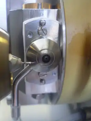 - ↑ Clampitt, R. (1981). "Advances in molten metal field ion sources". Nuclear Instruments and Methods in Physics Research. 189 (1): 111–116. Bibcode:1981NIMPR.189..111C. doi:10.1016/0029-554X(81)90132-4. ISSN 0167-5087.