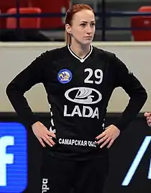 Elena Mikhailovna Utkina (Russian: Елена Михайловна Уткина, maiden name Fomina, former name Konova;[1][2] born 29 May 1990) is a Russian handballer for Kuban Krasnodar and the Russian national team.[3][4]