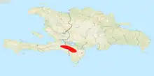 This species is restricted to the Massif de la Selle in Haiti, and Sierra de Bahoruco in the Dominican Republic, Hispaniola. It has been recorded from 1,182 to 2,303 m asl.[4][5]
