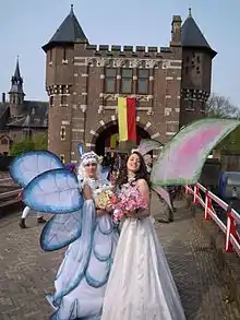 For the first time, it was organized in 2001 in the historical theme park Archeon. From 2009 Elfia (also known as the Kingdom of Elfia) appears twice a year, in April at Castle de Haar, Haarzuilens and in September at Castle Arcen, Arcen. The Haarzuilens event is the largest fantasy & costume event in Europe[2] and attracts some 27,000 visitors every year.[3] Elfia has been created by Stefan Struik but is now managed by his sister Helena Struik with the support of a group of small companies. Elfia is actually a cross-section of genres: next to fantasy, there are also themes from science fiction, LARP, gothic, manga, cosplay and historical reenactment genres. But most of all it is a costume event with (fantasy and historical) costume parades. Elfia also characterizes herself as a kingdom with a real flag, a border with fantasy customs officers, and royal elections. There are ambassadors appointed in seven different countries.