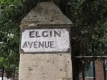 Elgin Avenue is a street in Maida Vale in London. Located in the City of Westminster, it runs east to west from the A5 road close to Maida Vale tube station west to the Maida Hill area where it meets the Harrow Road. Sutherland Avenue runs roughly parallel to the south and is connected to Elgin Avenue by Lauderdale Road. The road continues east of the A5 as Abercorn Place which runs through St. John's Wood.