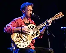 Cook performs solo on a resophonic guitar by National and a 12-string acoustic guitar made by Rockbridge Guitars in Charlottesville, Virginia. Both instruments are electrified supplementally. With the band, he plays a customized Fender Stratocaster and Telecaster.[15]