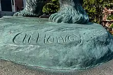 Eli Harvey's signature adorns "Bronze Bruno" at Brown University (1927)