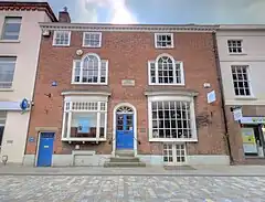 Ashmole was born on 23 May 1617[2][3] in Breadmarket Street, Lichfield, Staffordshire.[4] His family had been prominent, but its fortunes had declined by the time of Ashmole's birth. His mother, Anne, was the daughter of a wealthy Coventry draper, Anthony Bowyer, and a relative of James Paget, a Baron of the Exchequer. His father, Simon Ashmole (1589–1634), was a saddler, who had served as a soldier in Ireland and Europe. Elias Ashmole attended Lichfield Grammar School (now King Edward VI School) and became a chorister at Lichfield Cathedral. In 1633, he went to live in London as mentor to Paget's sons, and in 1638, with James Paget's help, he qualified as a solicitor. He enjoyed a successful legal practice in London, and married Eleanor Mainwaring (1603–1641), a member of a déclassé Cheshire aristocratic family, who died, while pregnant,[5] only three years later on 6 December 1641.[2] Still in his early twenties, Ashmole had taken the first steps towards status and wealth. He also became allied with Major-General Charles Worsley (who died 12 June 1656 and was buried at Westminster Abbey), brother-in-law of his sister, Mary Ashmole, who married John Booth, of Salford.
