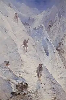 He was born in November 1832 in Birmingham, where his earlier years were spent. Due to the poorness of his family, without the help of one or two friends he would have been unable to study art, for which his talent was soon exhibited.[1] After passing some years at the art academy in Birmingham, he became at the age of eighteen a student at the Royal Academy Schools in London, where he had already exhibited a picture.[1] There he worked assiduously, drawing from the antique and from life. Nearly ten years later an accidental circumstance revealed to a friend his capabilities in mountain landscape, and in 1860, immediately after his marriage, he went to Switzerland. Thence he proceeded to Egypt, where unhappily his wife died of dysentery near the second cataract. He remained in the east, spending some time in Syria and at Constantinople, till the spring of 1862, when he returned for a short time to London. But for the next five years he was much abroad, working either in the Alps or in Egypt.[1]