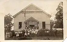 The Methodist Church purchased 3 blocks of land in Elimbah in 1913.[18] In 1953, a church was being constructed, with Elimbah Methodist Church opening in 1954.[19] With the amalgamation of the Methodist Church into the Uniting Church in Australia in 1977, it became Elimbah Uniting Church.[20]