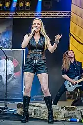 Elina Siirala (born 27 October 1983) is a Finnish soprano. She is the founder and frontwoman for the English melodic metal band Angel Nation (formerly EnkElination) and the current female vocalist for the German symphonic metal/viking metal band Leaves' Eyes. Elina is the second cousin of Tuomas Holopainen, founder and keyboardist of Nightwish.[1]