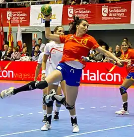 She was part of the Spanish team at the 2008 European Women's Handball Championship,[3] where the Spanish team reached the final, after defeating Germany in the semifinal.[4] She also competed at the 2011 World Women's Handball Championship in Brazil,[5] where the Spanish team placed third.[6][7]