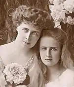 In Greece, Elisabeth had great difficulty integrating into the royal family, and her relationship with Queen Sophia was particularly awkward.[2][19] From an introverted temperament that could be mistaken as arrogance,[20][21] Elisabeth felt displaced by her in-laws, who regularly spoke in Greek in her presence, because she had not yet mastered the language.[2][22] Only King Constantine I and his sister, the Grand Duchess Maria Georgievna of Russia, found favor in her eyes.[2][21] Indeed, even the shy Diadochos disappointed his wife, who wanted to share with him a more passionate relationship.[23][24]