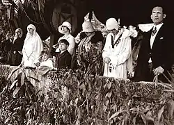 Meanwhile, the disaster of the Greco-Turkish War forced King Constantine I to abdicate, which pushed George on to the throne (27 September 1922).[32] The new king, however, had no power, and he and his queen were unable to resolve the repression organized by revolutionaries who took power against the representatives of the old regime. The new royal couple saw with anguish the near execution of Prince Andrew (the king's uncle) at the Trial of the Six.[34][35]
