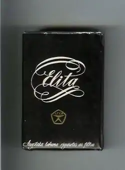 Elita is a Latvian brand of cigarettes that was produced between 1967 and 2009 by the Latvian company "Rīgas Tabakas Fabrika" and later by British American Tobacco. According to the data submitted by the Latvian State Revenue Service, Elita was the most sold brand filtered cigarettes in Latvia for the period of about twenty years.[2]