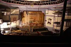 A nonprofit organization, the Historic Elitch Gardens Theatre Foundation, was formed in 2002 to raise funds, maintain, preserve and restore the theatre and carousel pavilion.[15] In 2006, the Historic Elitch Gardens Theatre Foundation received $5 million in federal, state, and city funding, plus grants and private donations. Work began on phase 1 -- saving and restoring the historic exterior.[16] The groundbreaking for the renovation of the theatre began with restoring the building's exterior, including a concrete foundation under the exterior walls. The roof, gable, main entrance/lobby, and exterior walls were replaced and painted.[16] A section of dressing rooms and shops on the West side of the building was demolished. Exterior restoration on the historic auditorium was completed in 2007.[17][18]