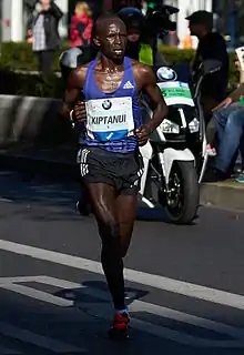 His first race of 2011 was the Rotterdam Marathon and came fifth, some minutes off the winner Wilson Chebet.[5] He was chosen to compete for Kenya at the 2011 World Championships in Athletics. He was among the leaders at the 25 km mark, but gradually fell behind after 30 km and finished the race in sixth place.[6] He ran the second best time of his career at the 2012 Seoul International Marathon, taking third place in a Kenyan podium sweep with a time of 2:06:44 hours.[7] In his two other outings that year he came eighth at the 2012 Berlin Marathon then second at the Beijing Marathon.[8]