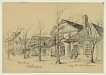 Verner did not become a professional artist until after her husband's death in 1925 left her the sole means of support for her children.[5] With advice from Smith, she worked to adapt her craft so that she could be self-supporting.[6] One avenue she took, like some of her contemporaries, was to publish her prints in books with titles like Prints and Impressions of Charleston that could be sold to tourists.[5] Another avenue was to seek commissions, and she came to specialize in making drawings of historic buildings in the cause of preservation.[2] Among her clients were Williamsburg Historic District, Harvard Medical School, the United States Military Academy, Princeton University, and the University of South Carolina.[2]