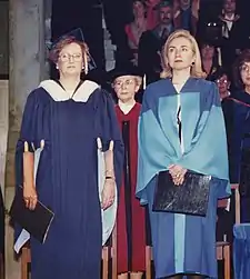 In 1991, Parr-Johnston was installed as the 8th President and Vice-Chancellor of Mount Saint Vincent University in Halifax, Nova Scotia. She served a full five-year term, leading Canada’s only university dedicated primarily to the education of women. On June 16, 1995, coinciding with the 21st G7 summit taking place in Halifax, Parr-Johnston awarded an honorary Doctor of Letters to First Lady of the United States of America, Hillary Clinton, a fellow alumna of Wellesley College. The mount has established an endowed scholarship in the name of Parr-Johnston.[5]