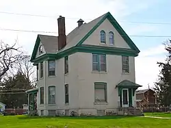 The Elizabeth Pohlmann House is a historic building located in the West End of Davenport, Iowa, United States. Elizabeth Pohlmann was the widow of Herman B. Pohlmann, and she had this house built in 1896. The Pohlmann's were part of the German-ethnic community that lived on the northwest side of Davenport. The house features the hip roof and gable projections typically found in the Queen Anne style. But it also includes full cornice returns, which create pediments, and light colored brick typical of the Colonial Revival style.[2] The 2½-story residence also features a main entrance framed by sidelights and an art glass transom over a plate glass parlor window. Both the front and the back of the house are missing prominent porches that were originally part of the structure.[2] It has been listed on the National Register of Historic Places since 1984.[1]