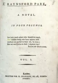 - Anonymous. Raynsford Park, a novel. In four volumes. London: George Kearsley, 1790.[22]
