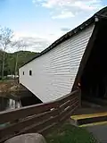 Although logs from a lumber operation and a barn were thrown against the covered bridge and its supports during a disastrous flood in 1901, this was the only major bridge in the area to survive.