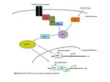 - ↑ Howe LR, Leevers SJ, Gómez N, Nakielny S, Cohen P, Marshall CJ (October 1992). "Activation of the MAP kinase pathway by the protein kinase raf". Cell. 71 (2): 335–42. doi:10.1016/0092-8674(92)90361-F. PMID 1330321. S2CID 6640043.