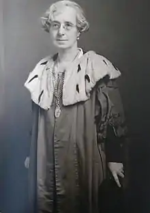 In 1919 she ran for Edinburgh Council in the Morningside Ward by-election, and became the first female councillor in a Scottish city in January 1919.[1][2] Prior to this, women in office in Scottish cities had only served on school and parish council/parochial boards.[2]