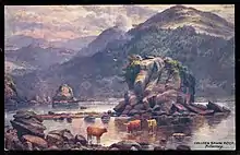 A large rock in Muckross Lake in County Kerry is known as the Colleen Bawn Rock.[7] While the name of the stone appears to predate Ellen's murder, it has since been attributed as a memorial to her and is sometimes mistakenly assumed to be the place of her murder, the spot where her body was discovered, or her burial place.
