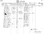 On 12 August 1875, Ellen Southard set sail for Liverpool in England from Saint John, New Brunswick, under the command of Captain Henry Woodworth[16][lower-alpha 2] with a load of tropical deal, a type of softwood.[17] The captain's wife and fifteen crew members were on board. She was approaching the River Mersey on 26 September 1875 when the most violent storm to hit the region in 36 years struck. It began at 9 pm, increasing rapidly in intensity to hurricane strength by midnight; the storm remained at this level until 2 am.[16] Buildings were damaged ashore, with two people killed by falling masonry, while on the river, vessels were blown from their moorings and damaged by colliding with one another or with the quays.[18]