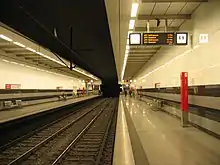 Ellerstraße is an underground station on the Düsseldorf Stadtbahn lines U74, U77 and U79 in Düsseldorf. The station lies on Ellerstraße in the district of Oberbilk.
