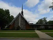 The land was purchased on the corner of Kent Avenue and East Van Buren Street in Elmhurst. This was only four blocks from land that had recently been purchased by Timothy Christian School so that it could move West from Cicero. Jay De Vries was the pastor of the congregation when it moved to Elmhurst in 1964.[10] The new brick edifice was the church home of about sixty families and the congregation renamed itself Elmhurst Christian Reformed Church.[11][12] De Vries was followed by pastors Garrett Stoutmeyer,[13] Wayne Leys,[14] and Bert De Jong.[15] Peter Semeyn took over as the senior pastor in 2011.[16] On June 14, 1990, the church's steeple was struck by lightning. After smoldering through the early morning hours, flames began shooting from the steeple by sunrise and the church building experienced severe damage. The congregation met in several other facilities in the area—including the nearby Drury Lane Theater and Bryan Junior High School—but soon rebuilt and recovered.[17] The church continued to grow until it had around 1,000 members in the mid-1990s.[12] In the late 1990s and early 2000s, the church began to outgrow its location in spite of the annexation of several nearby properties.[18] In 2009, the congregation made another move after constructing new building a few blocks to the south. The original Elmhurst property was sold to the Diocese of Southwest America of the Malankara Orthodox Syrian Church for use as a new parish church building.[19] By 2012, the church had a membership of 1,542, making it one of the largest congregations in the denomination.[20]