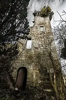 Elphinstone Tower, also known as Dunmore Tower or Airth Tower, is a ruined tower house on the Dunmore Estate in central Scotland. It is located 1.5 kilometres (0.93 mi) north-west of Airth and 9 kilometres (5.6 mi) east of Stirling in the Falkirk council area. The 16th-century ruin is protected as a category C(S) listed building.[1]