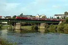 The Bad Rappenau–Bad Friedrichshall section was closed for construction from 7 January 2014[12] until 30 April 2015. At this time a rail replacement bus service ran between Bad Rappenau and Neckarsulm, which was extended to Sinsheim on weekends.[13] During the construction period, the Regional-Express services ran over the Neckar Valley Railway.