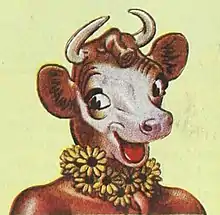 Elsie the Cow is a cartoon cow developed as a mascot for the Borden Dairy Company in 1936 to symbolize the "perfect dairy product".[1] Since the demise of Borden in the mid-1990s, the character has continued to be used in the same capacity for the company's partial successors, Eagle Family Foods (owned by J.M. Smucker) and Borden Dairy.