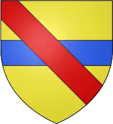 ArmsOr, a bend gules, surmounted by a fesse azure[1]
