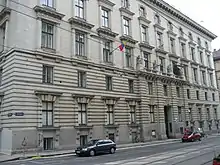 The Embassy of Colombia in Vienna is the diplomatic mission of the Republic of Colombia to the Republic of Austria; it is headed by the Ambassador of Colombia to Austria Miguel Camilo Ruíz Blanco. It is located in the Innere Stadt district of Vienna, near the Austrian Parliament, the University of Vienna, the Rathaus, and the Burgtheater, precisely at Stadiongasse 6-8[1] at the intersection of Bartensteingasse, and it is serviced by the Rathaus station.[2]