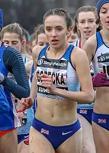 At the age of 14 she topped the UK rankings chart in the 1500m for the U15 age group, in what was the third fastest ever time for someone her age. By the time she was 16 years old she had won a total of 20 national and seven international races and taken part in three World Championship events.[1] Górecka holds the British record time for the mile race as an U15 Girl, 4:46.87, which beat the previous record by four seconds.[2] She also holds the record for 3000m in the U15/U17 age groups.