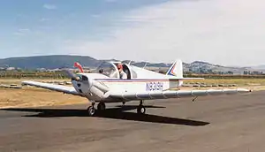 The A-2 had side-by-side seating in an enclosed cabin for a pilot and passenger.[1] Of all metal construction it had a fixed tricycle landing gear and was powered by a Continental A90 flat-four piston engine.[1] Many major components of the aircraft were designed to be interchangeable to simplify and lower manufacturing costs. The vertical and horizontal stabilizers where interchange able as well as the rudder and elevators.[2] A symmetrical section of the wing was interchangeable and the upper and lower fuselage skins were also identical.[2] A total of 58 Trojans had been completed when production ceased in 1950.[3]