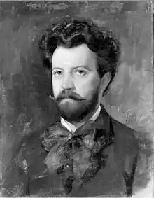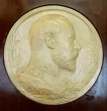 From 1897 to 1915 his address was in London where he regularly met with the artist Lawrence Alma-Tadema.[3][4] He had been mainly a sculptor and medallist, but he began oil painting, especially portraiture in oils, in 1897; his early mentor was John Singer Sargent. He exhibited works at the Royal Academy of Arts in 1898 and he taught there.[2][7] He worked on commissions including portraits for Queen Victoria and Edward VII, and his portraits became fashionable among various patrons from the aristocracy and high society.[2][3][4][5] He was honoured with the Royal Victorian Order (MVO) in 1909.[8] While in England he was employed by the Birmingham Mint.[5] By 1905 he had been teaching at Paris, Berlin, Munich, Vienna, and Rome and was making winter trips to the United States.[4][7]