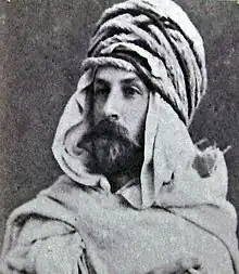 Emile Claus during his journey to Algeria, 1879. Here with an Algerian traditional burnus