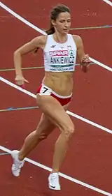 Emilia Ankiewicz (Polish pronunciation: [ɛˈmilja anˈkjɛvit͡ʂ]; born 22 November 1990 in Elbląg) is a Polish athlete specialising in the 400 metres hurdles.[3] She won the silver medal at the 2015 Summer Universiade. In addition, she made the final at the 2016 European Championships finishing eighth.