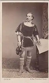 Emilio Naudin studied singing in Milan with Giacomo Panizza. After completing his studies, he began his career as a tenor, being particularly successful in operas by Verdi, and sang in operas by that composer as well as others at leading theatres in Italy, Spain, and England.[1] He appeared at the Royal Opera House, London, for ten consecutive seasons between 1863 and 1872. In Paris, he sang at the Paris Opera from 1862 until 1867 in operas by Verdi, Donizetti, Mozart, and others.[1]