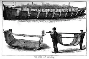 The expedition was the largest and best-equipped to go to Africa; a 28-foot steel boat named the Advance was designed to be divided into 12 sections for carrying over land, and Hiram Maxim presented the expedition with one of his recently invented Maxim guns, which was the first to be brought to Africa. Merely 'exhibiting' the gun was thought to be a scare, which would spare the expedition problems with hostile natives.