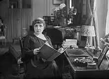 After her affair with Fauré, Emma was introduced to Debussy in late 1903 by her son Raoul, one of his students.[2] In the summer of 1904, after a secret vacation with Emma in Jersey, Debussy wrote to his wife Rosalie ("Lilly") Texier announcing the end of their marriage. Distraught, Texier attempted suicide with a revolver. The ensuing scandal alienated Bardac and Debussy from friends and family, and in the spring of 1905 they fled to England, where they finalized their divorces, Emma from Sigismond on 4 May, Debussy from Rosalie on 2 August. They returned to Paris in time for the birth, on 30 October, of their daughter Claude-Emma, nicknamed "Chouchou", and dedicatee of his Children's Corner Suite composed in 1909.[3] The couple bought a large house in a courtyard development off the Avenue du Bois de Boulogne (now Avenue Foch), where Debussy would reside for the rest of his life.[4] Bardac eventually married Debussy in 1908, their troubled union enduring until Debussy's death 10 years later. Claude-Emma died while recovering from diphtheria in 1919 when the doctor gave her the wrong treatment, the year after her father's death.[5] Emma Bardac died in 1934 and, like Claude-Emma, was laid to rest in Debussy's grave in the Cimetière de Passy in Paris.