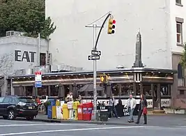 The diner had previously had its original windows changed and its monitor roof hidden from the outside.[3] The three partners painted "EAT" in large letters on a wall behind the diner, put in a miniature, stainless steel, a stylized outline of the Empire State Building on a corner of the roof, and replaced the Formica tabletops and counters with black glass.[3] The partners also opened Ruskay's, another restaurant, on Columbus Avenue, that same year, and would open Rick's Lounge, in downtown Manhattan on Eighth Avenue, in 1981.[4]