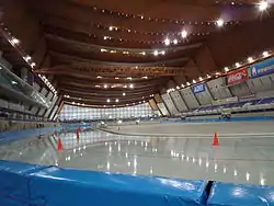 Nagano Olympic Memorial Arena (長野市オリンピック記念アリーナ, Nagano-shi Orinpikku Kinen Ari-na), or M-Wave (エムウェーブ, emu-ue-bu), is a covered speed skating oval in the city of Nagano, Japan. M-Wave, which opened in November, 1996, was constructed for the speed skating events at the 1998 Winter Olympics. It was Japan's first International Skating Union (ISU) standard indoor 400m double-track,[12] and only second indoor track speed skating in Japan. The other, Meiji Hokkaido-Tokachi Oval, is located in Obihiro, Hokkaido.