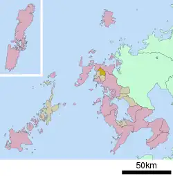 The town has two pre-schools, a kindergarten, two elementary schools and one junior high school (middle school). It is approximately one hour's drive from the city hall of Sasebo, two hours from Nagasaki and about three hours from Fukuoka.