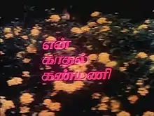 En Kadhal Kanmani (transl. My love, apple of my eye) is a 1990 Indian Tamil-language romance film directed by T. J. Joy, starring Vikram and Rekha Nambiar. This is the debut film for Vikram. It was released on 17 October 1990 and failed at the box office.